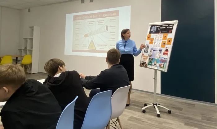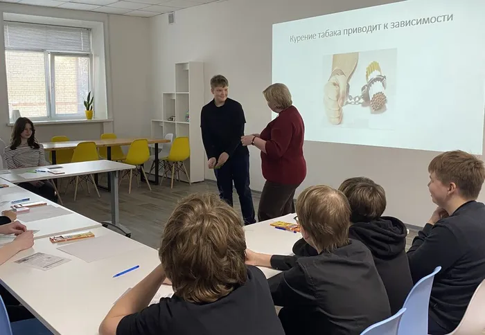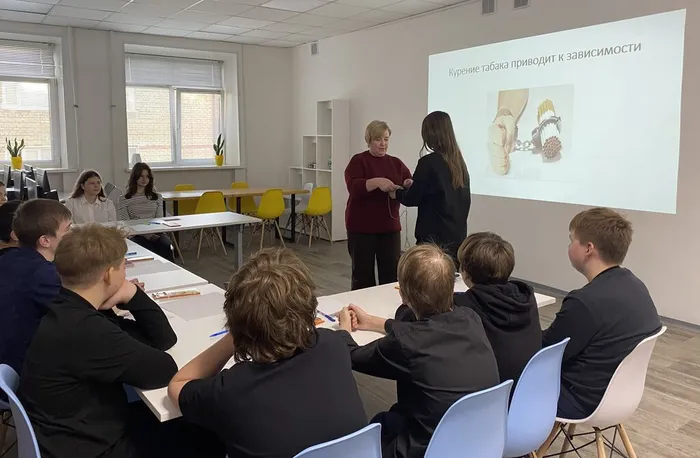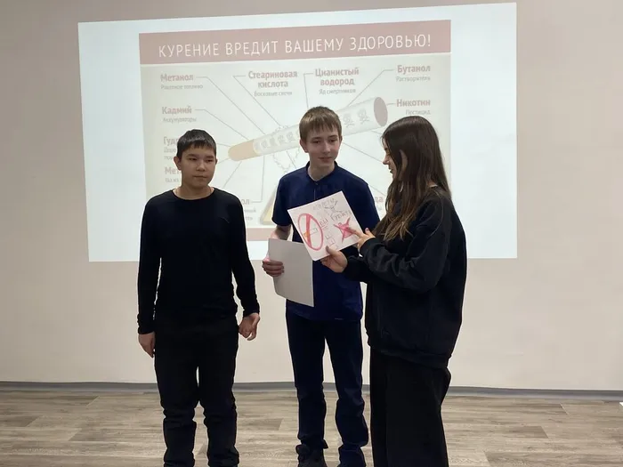 Светлана Михайловна познакомила учащихся 8 «В» класса Уватской школы (классный руководитель Анна Александровна Кожевникова) с последствиями, которые наносят вейпы и никотин здоровью курильщиков и тем, кто вдыхает это вредное вещество. Школьники рисовали плакат на тему: «Мы против курения!» и обосновывали свои взгляды. Кроме того, они приняли участие в игре «Зависимость от курения».