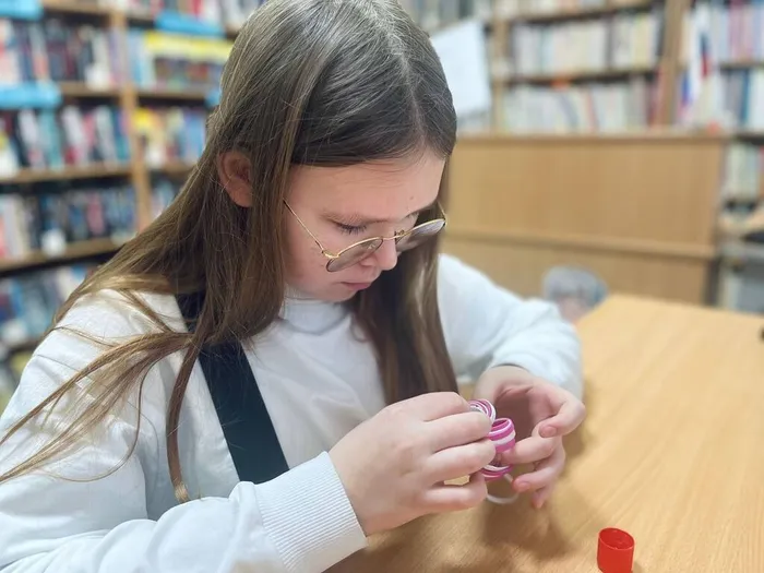 Фоамиран — удивительный мягкий материал, похожий на бархатную бумагу, который легко принимает любую форму. Под руководством библиотекаря ребята познакомились с этой техникой и погрузились в процесс создания праздника своими руками. Главным творческим вызовом для участников стало создание большой, нарядной игрушки — спиралевидного шара. Эта эффектная конструкция требовала не только фантазии, но и аккуратности, терпения и пространственного мышления. Одни создавали «ледяные» шары в холодной гамме, другие — «теплые» или «золотистые», наполненные теплом и светом. В процессе работы ребята не только осваивали новый вид творчества, но и общались, помогали друг другу советом, обменивались идеями по декору.