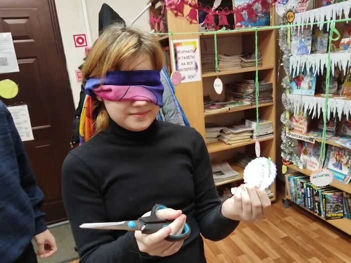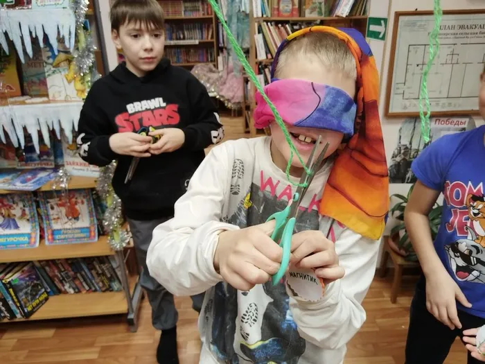 А потом началась весёлая игра «Получи приз». С завязанными глазами ребята осторожно вырезали игрушки из гирлянды, гадая, какой подарок их ждёт. Смех, возгласы, радостные вскрики — атмосфера была по‑настоящему волшебной.