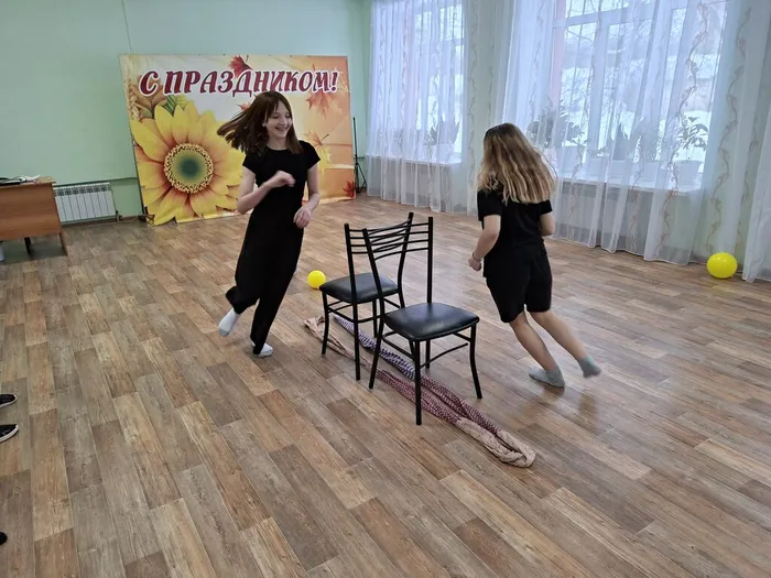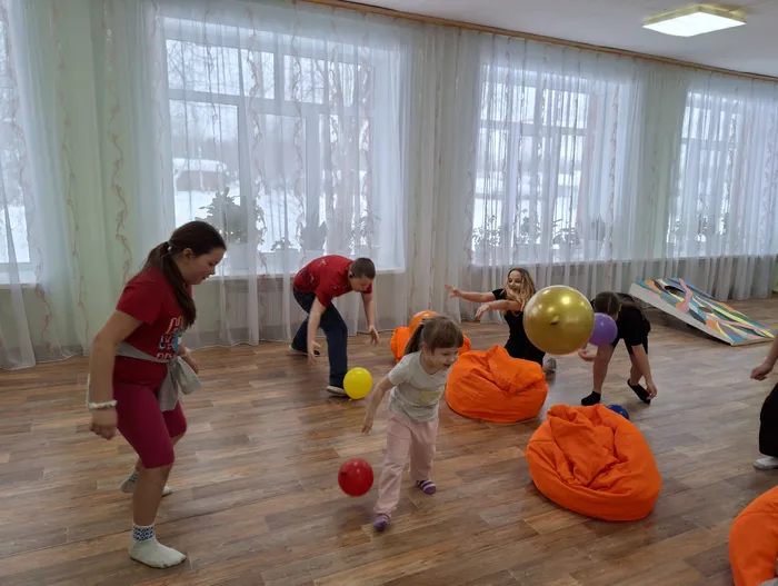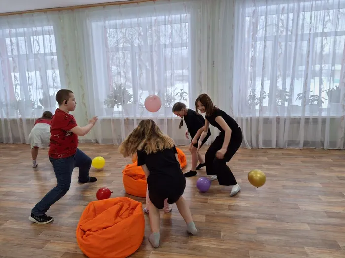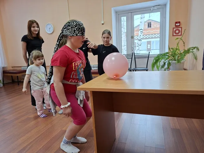 Дальше настроение стало ещё более музыкальным на станции «Пойми меня»: дети угадывали знакомые песни по описаниям и хором распевали куплеты — звучали «Пропала собака», «Песенка Чебурашки» и другие добрые мелодии. Немало веселья принесли и подвижные испытания: в «Воздушном бое» команды под музыку перебрасывали воздушные шарики, а в игре «Наматывай скорей» участники бегали вокруг стульев, стараясь первыми сесть и дёрнуть за верёвку. Особую порцию смеха подарила станция «Толкание ядра», где ведущий с завязанными глазами пытался сдуть шарик со стола — его комичные попытки вызывали взрыв хохота у зрителей.