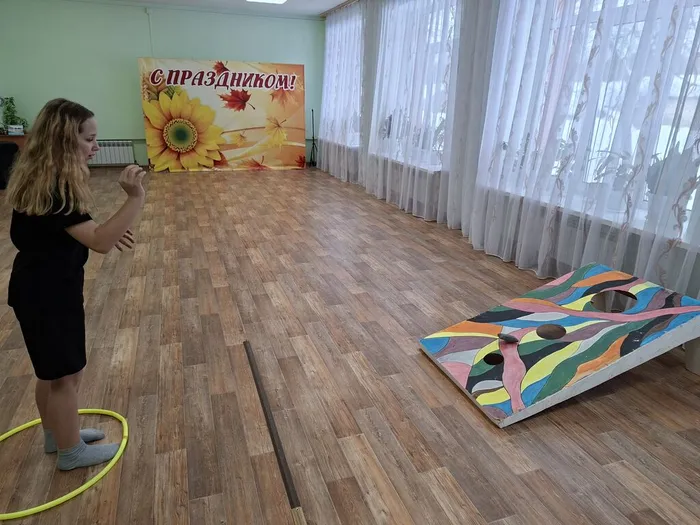 Программа началась с весёлой станции «Почемучки»: дети отгадывали хитрые загадки и дружно смеялись над остроумными ответами. Например, на вопрос «Что будет делать ворона, прожив 3 года?» звучал ответ «Жить четвёртый!», а загадка «На каких полях трава не растёт?» вызывала новый всплеск смеха с ответом «На полях шляпы!». Затем ребята проверили свою меткость в игре «Конхол», бросая мешочки в цель правой и левой рукой, — каждый удачный бросок сопровождался радостными возгласами и поддержкой товарищей.