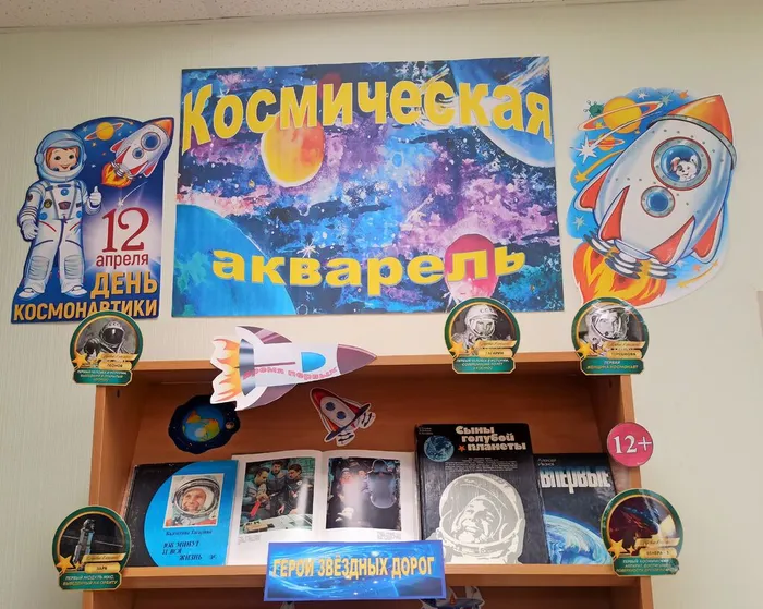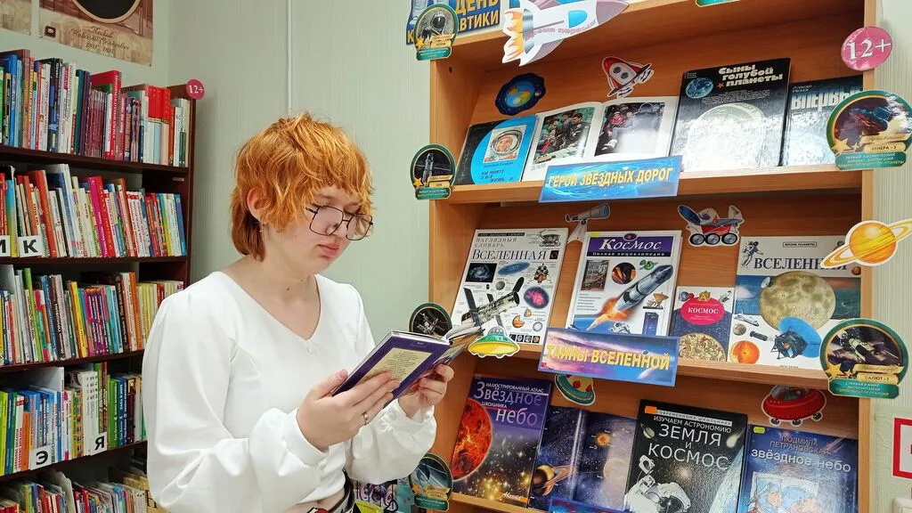 С 6 по 12 апреля 2026 года в России проходит первая в истории страны Неделя космоса. Акция приурочена к 65-летию первого полёта человека в космос. В рамках празднования Дня космонавтики в Соровской библиотеке оформлена книжная выставка-познание «Космическая акварель».