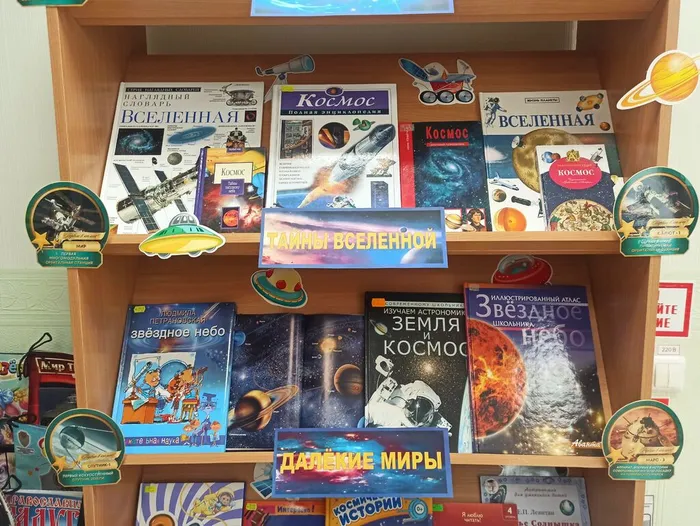 На выставке представлены научно-популярные, энциклопедические и литературно-художественные издания. В энциклопедиях собраны ценные знания о космосе, Солнечной системе и её окружении. Яркие иллюстрации и увлекательные факты не только привлекут внимание читателей, но и помогут расширить их кругозор. Познавательные книги на выставке ответят на самые неожиданные вопросы, такие как: «Где рождаются кометы?», «Что за планета украшена сверкающими осколками льда?» и многие другие. Эти издания будут интересны детям всех возрастов.